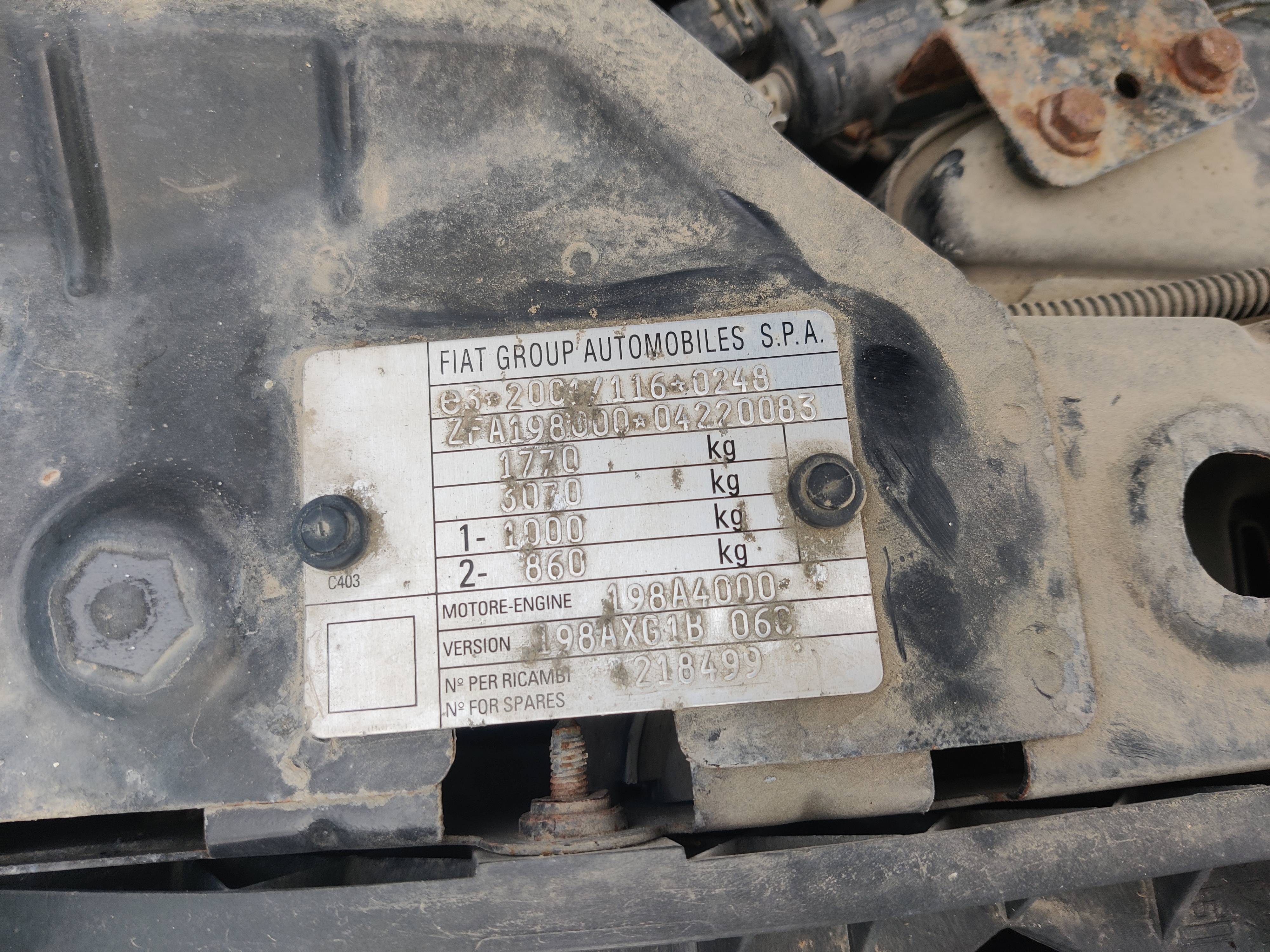 - Codice motore compatibili: 198 A4.000, 198A4000